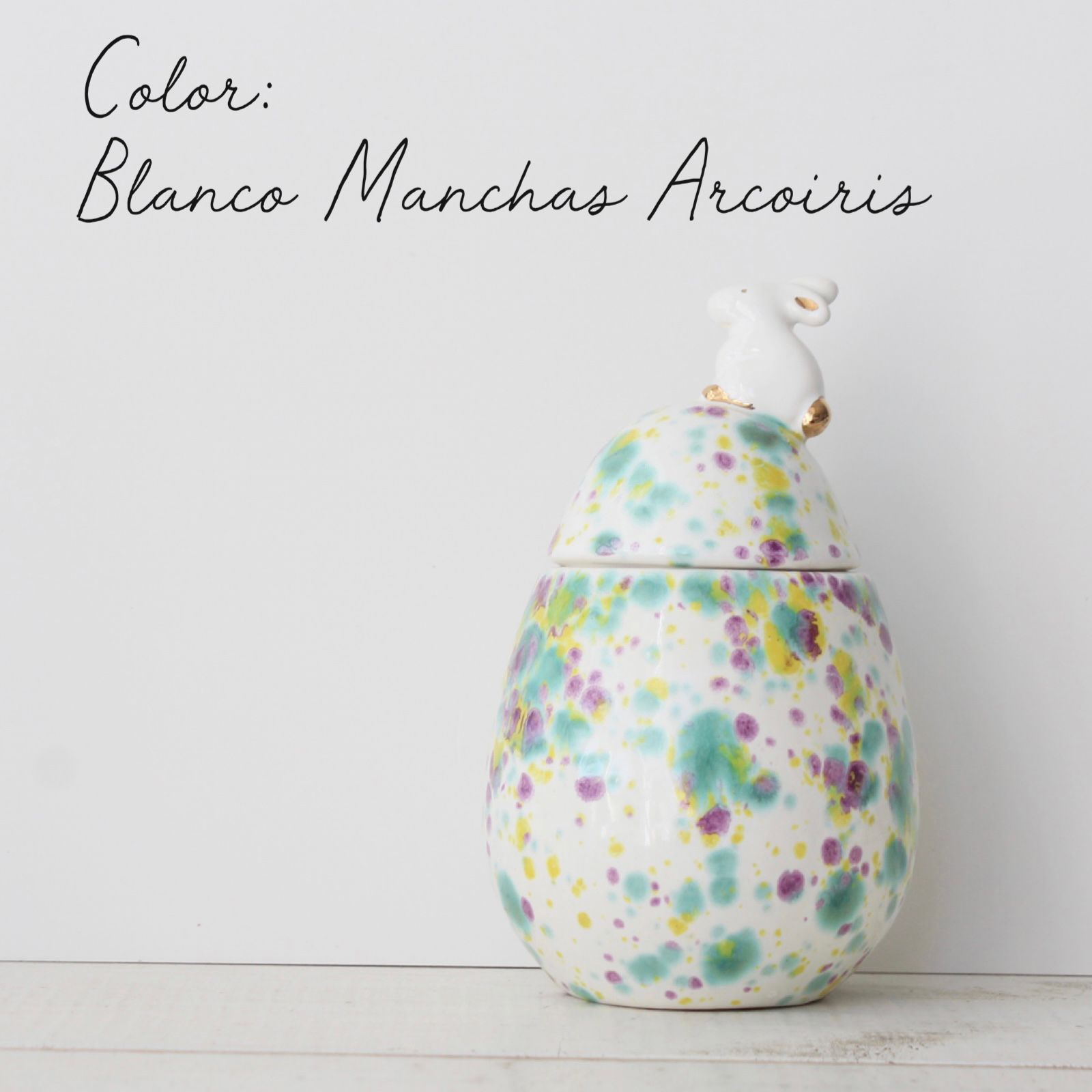 Sobre la tapa, cada conejito es único, con detalles en oro líquido y acabados especiales que los hacen irrepetibles.